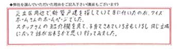 ワイズホーム HOME / ご購入者様の声 / ご購入者様の声1
